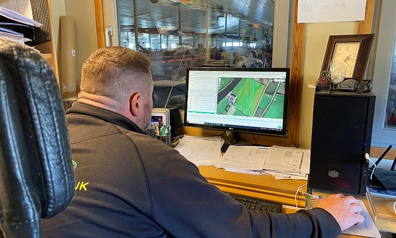 På Tynset ligg det framleis små haugar med snø i hjørnet av tunet og det er eit lett snev av snø i lufta. Det einaste som minner om vår denne dagen er husdyrgjødselutstyret, som er teke fram for klargjering. Inne på fjøskontoret sit Morten klar framfor datamaskina med avlingskart frå finsnittaren hans, ein John Deere 8200i med ein HarvestLab montert. Kartet viser blant anna korleis mengde, tørrstoff og næringsinnhald varierte i graset på skiftet nærast fjøset hans, målt med NIR-sensoren i HarvestLab, da han hausta med finsnittaren i fjor.