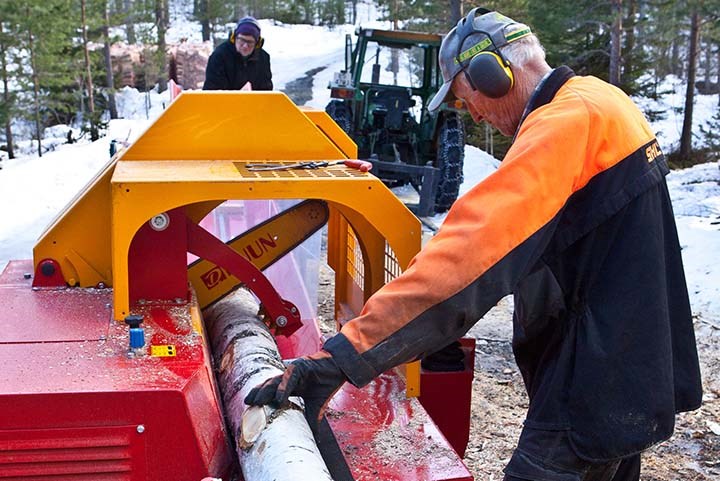 Like før jul kom den nye Duun-maskinen. Da hadde både ekteparet og samarbeids-kollegaen Sigurd Skarra vurdert flere forskjellige maskinmerker. Samtidig inngikk Felleskjøpet en avtale den 1. mai i fjor med Duun industrier As, om salg av vedmaskiner.