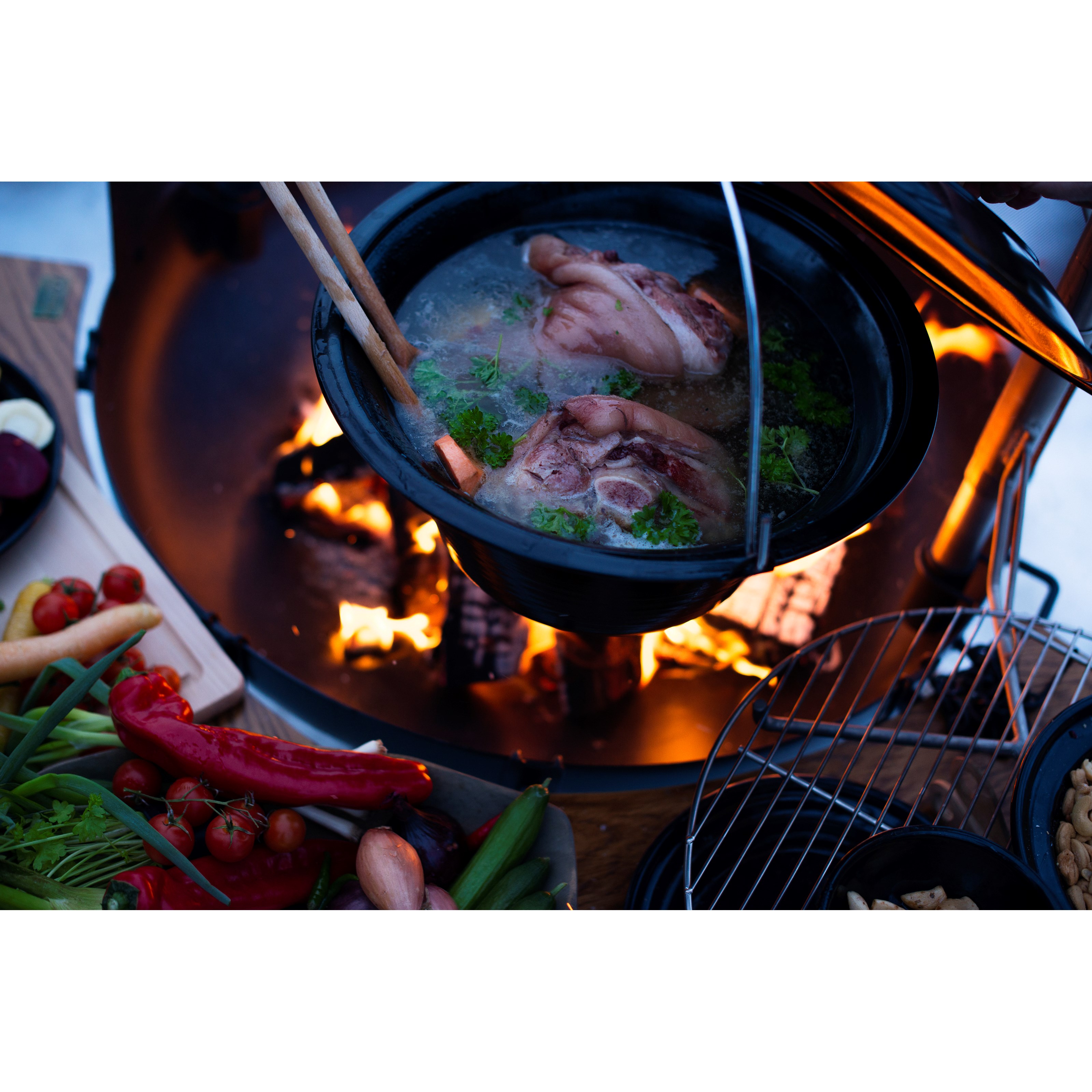 Den er ideell for å lage varm, hjemmelaget suppe, fårikål eller lapskaus utendørs.
