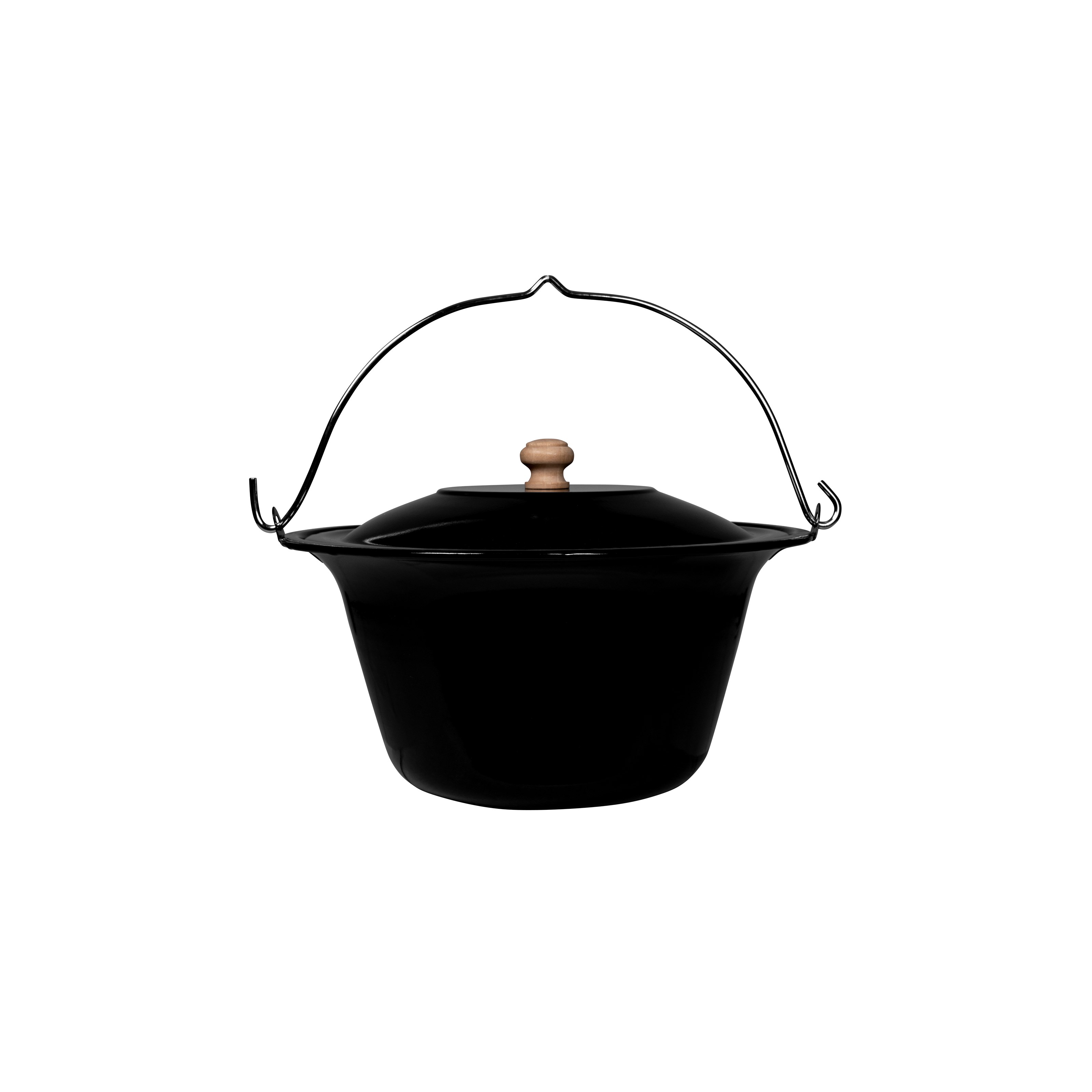 Espegard Suppegryte er en praktisk gryte laget av svart emaljert stål, spesielt designet for matlaging over bål.