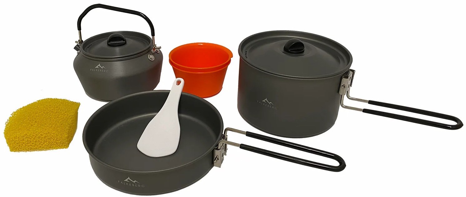 Lett og robust kjelesett fra Falkeberg som tar svært liten plass i sekken. Laget i hardanodisert aluminium som er et meget solid og slitesterkt materiale.