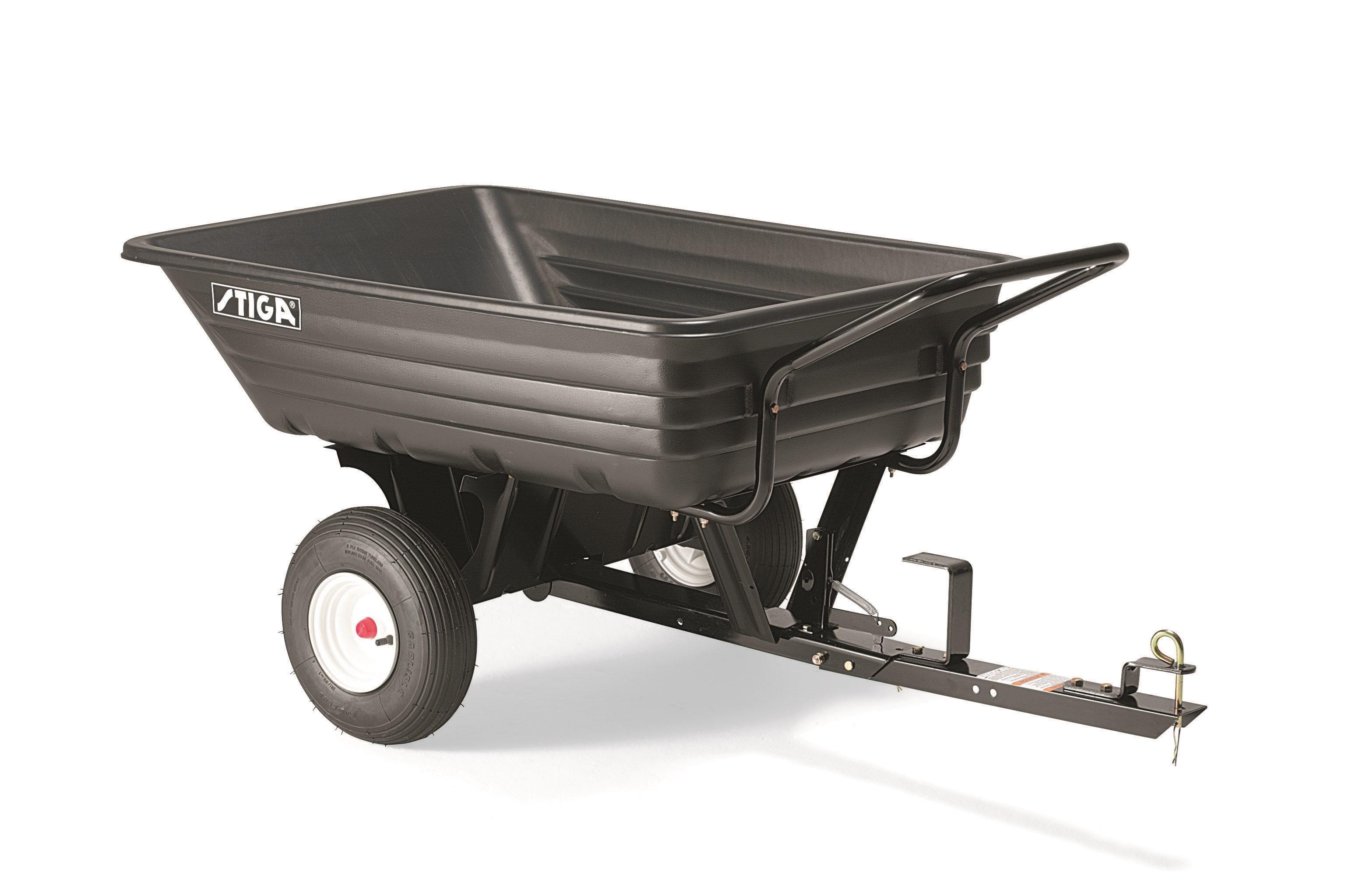 Den er laget i plast, noe som gir den en lav totalvekt og den har en standard hengertilkobling for feste til traktoren. Produktet har tipp som gjør det enkelt å tømme.