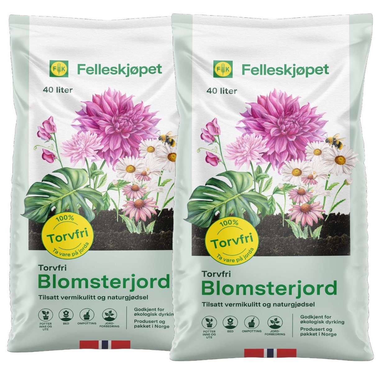 Felleskjøpets Torvfri Blomsterjord er beriket med vermikulitt, og er spesielt designet for blomster og grønne planter i potter, krukker og bed. Vermikulitt absorberer fuktighet og gjør at jorden holder seg fuktig over tid. Jorden er egnet for både innendørs og utendørs dyrking av en bred variasjon av planter, og er godkjent for økologisk produksjon.