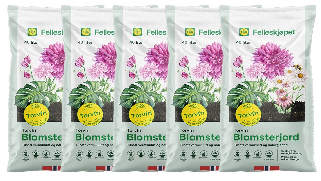 Felleskjøpets Torvfri Blomsterjord er beriket med vermikulitt, og er spesielt designet for blomster og grønne planter i potter, krukker og bed. Vermikulitt absorberer fuktighet og gjør at jorden holder seg fuktig over tid. Jorden er egnet for både innendørs og utendørs dyrking av en bred variasjon av planter, og er godkjent for økologisk produksjon.
