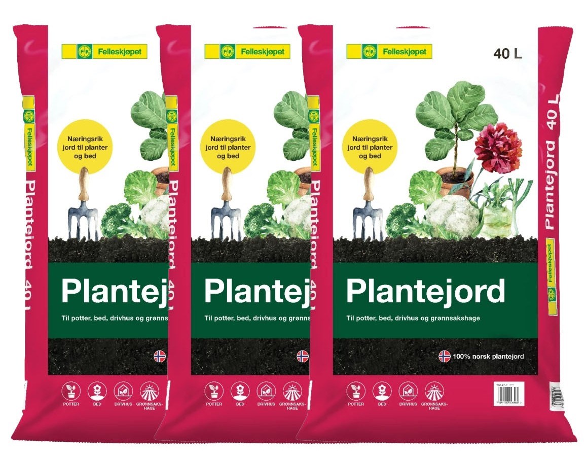 Felleskjøpet Plantejord er en 100 % norsk, næringsrik og porøs jordblanding, som gir et bredt bruksområde.