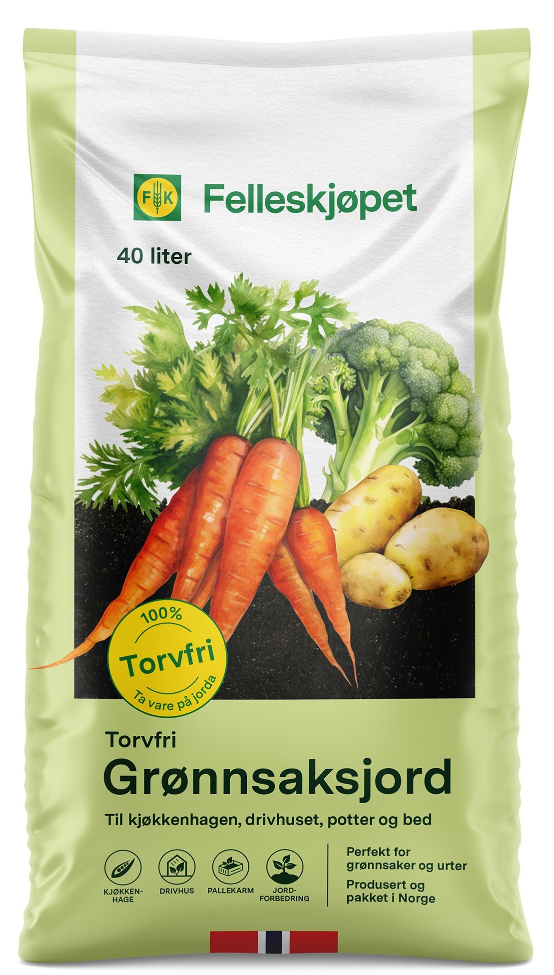Felleskjøpet Torvfri Grønnsaksjord 40 liter, for en sunn og produktiv kjøkkenhage.