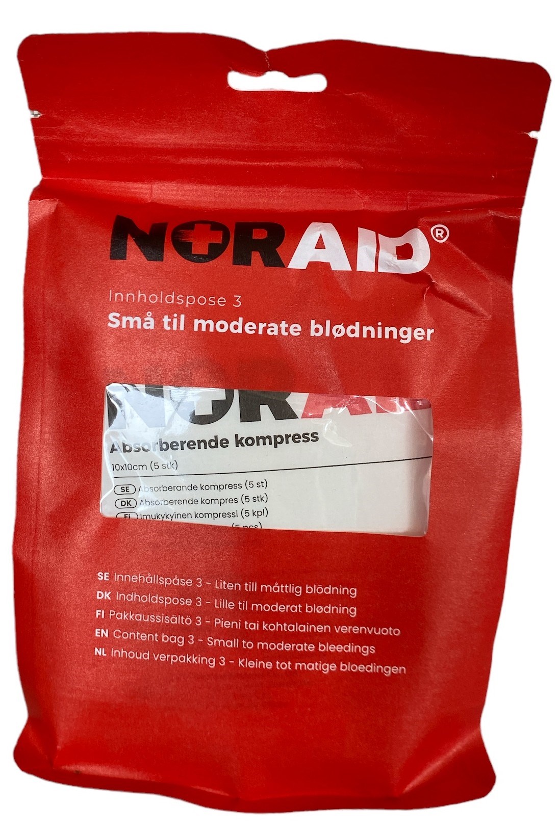 Refillpose for små til moderate blødninger. Posen gir en rimelig supplering der du kan etterfylle med akkurat det produktene du mangler i førstehjelpskofferten, uten å måtte bytte større deler av innholdet.