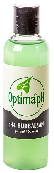 Optima pH4 Hudbalsam er en mild pleiende gelé. Velegnet til hudpleie av hele kroppen. Til tørre hender, overflatesår, kløe, hudplager, etter soling, etter barbering og fot/hudmassasje. pH4 bevarer den gode og normale bakteriefloraen og har hemmende effekt på problembakterier. 200 ml flaske med flipptopp.