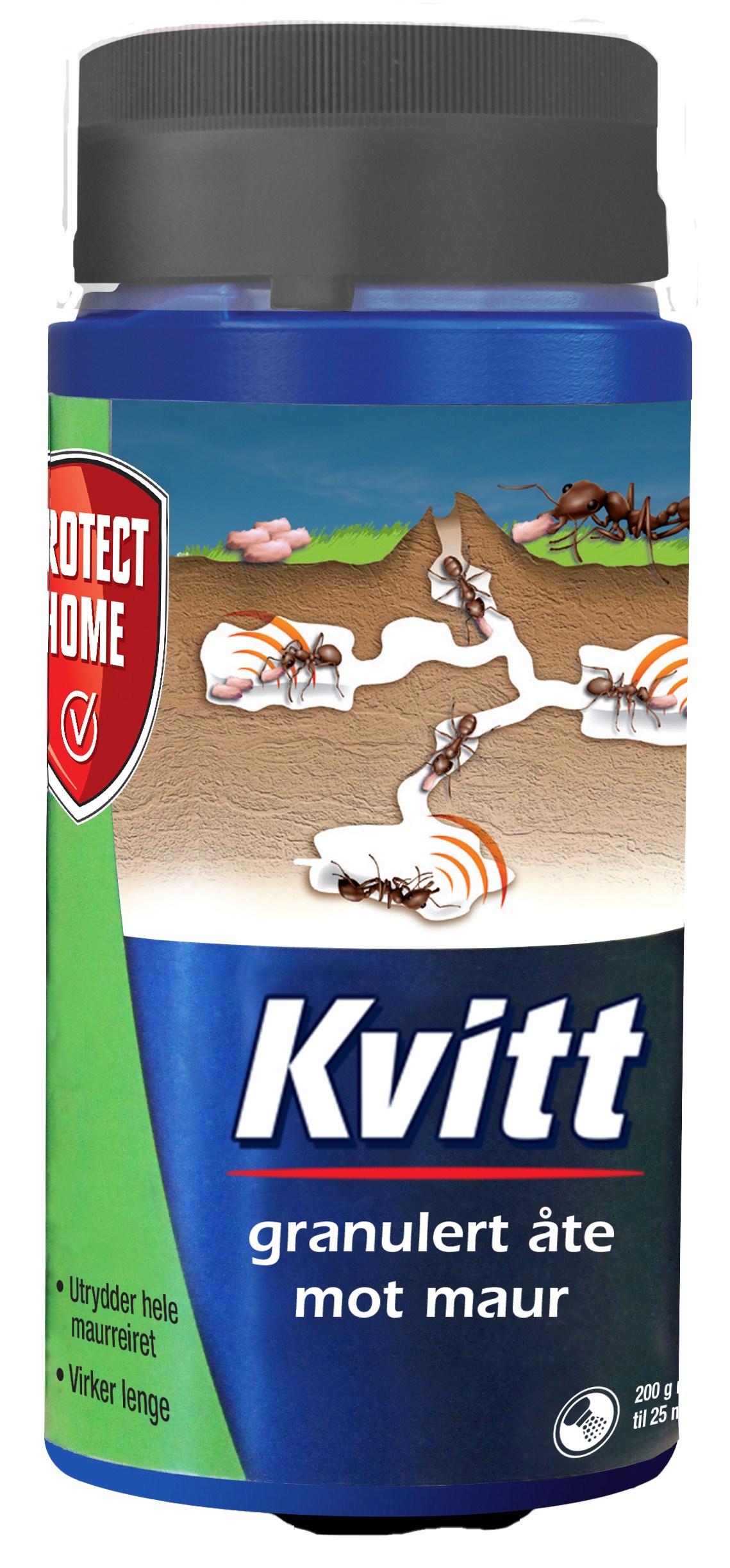 Allsidig maurmiddel som enkelt strøs utendørs. Mot maur, saksedyr, skrukketroll og sølvkre. Insektene får middelet på seg ved kontakt med behandlede området og tar det med seg tilbake til reiret. Virker raskt og lenge.