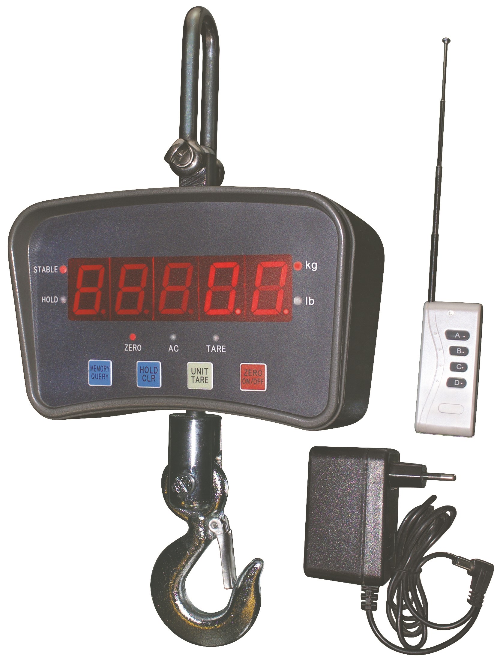 Kraftig og robust vekt til profesjonelt bruk. Slagfast aluminiumskabinett. Rustfritt oppheng og festekrok. Leveres med oppladbare batterier, adapter til 230V, somt fjernkontroll.