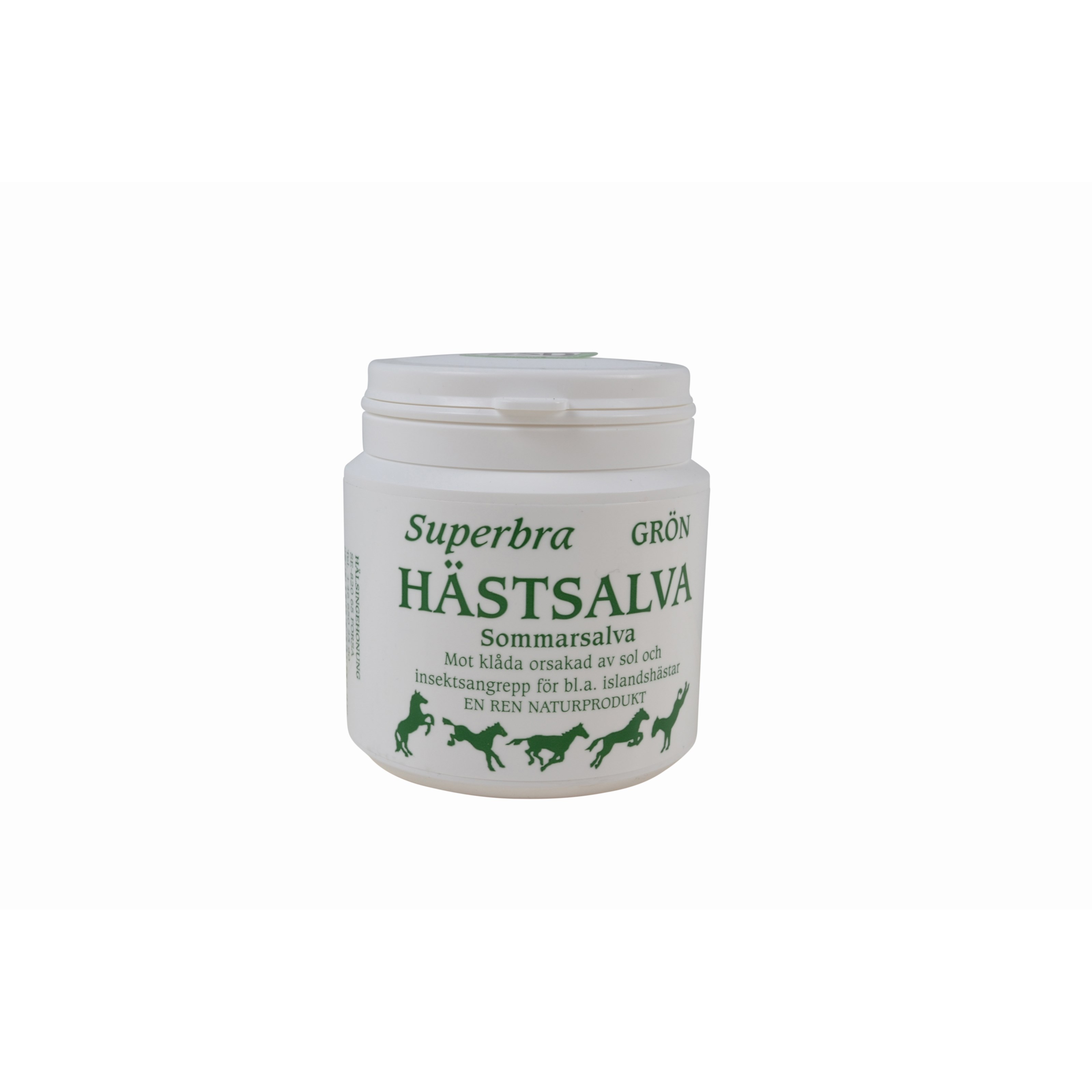 Sommersalve som hjelper mot kløe forårsaket av sol og insektsangrep. En mykgjørende bivoks salve med duft av citronella. For en naturlig behandling av hestens hud om sommeren. Salven er et rent og naturlig produkt.