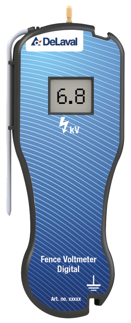 DeLaval voltmeter er et elektronisk måleinstrument til kontroll og feilsøking på elektriske gjerder. Måleren har digitalt display, og viser nøyaktig spenning på gjerdet i kV. Et utmerket hjelpemiddel ved kontroll av jordingspinnen, ved søking etter spenningsfall og trådbrudd.