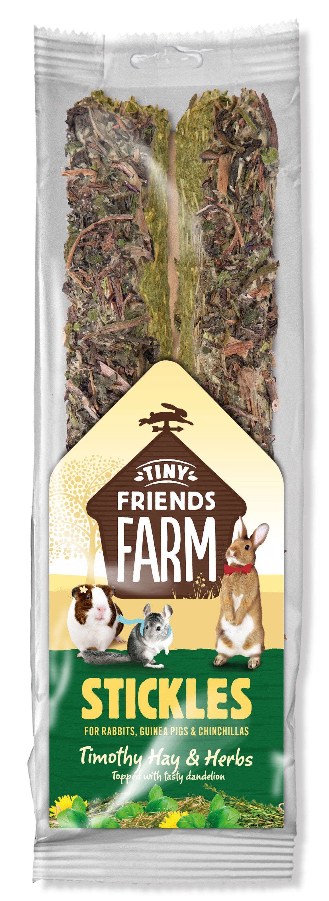 Stickles Timothy Hay and Herbs er velsmakende ferske kräckere fra bakeriet vårt, laget med naturlige korn og ekte frukt. Tiny Friends Stickles kan også henges rundt kjæledyrets oppholdssted for å oppmuntre til aktivitet og gnagning.